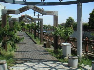 駅前広場を抜けて、海老川にかかるたろう橋に来ました。海老川は、昔から大雨が降ると頻繁に氾濫を起こし、住民を苦しめてきたのですが、河川改修後は、昔話となりました。都内に通勤する年配の千葉県民は、氾濫の都度、電車が止まったことを記憶している方が多いと思います。