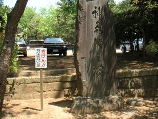 社務殿にいく途中に、石碑が立っていますが、どうもこの危険防止の立て札が気になります。