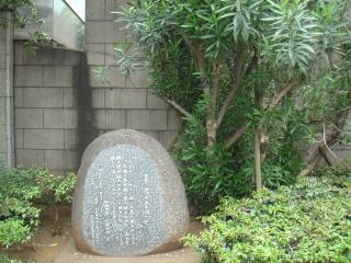 市民文化ホールの前に、太宰治が居宅で育てていたと言う夾竹桃が、ここに植え替えられて石碑が建てられています。