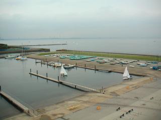 屋上からヨットハーバーの入り江を眺めました。
