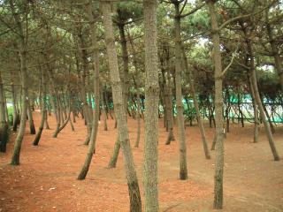 海岸沿いに、美しい松林が植林されています。