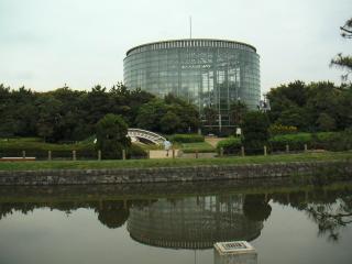 池の向こうに見えるのは、500種類あるといわれる花の美術館です。