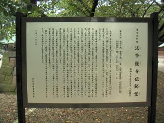 こちらは、宗祖日蓮聖人をお祀りする祖師堂の案内板です。何度も建て替えられて、現在の姿は、平成9年に完成したそうです。