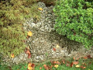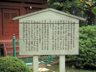 五重塔の真下にこんな看板があり、この下の石は、国歌「君が代」に出てくる”さざれ石”のいわれとなった石で、大変、目出度い石だという意味のことが書かれています。
