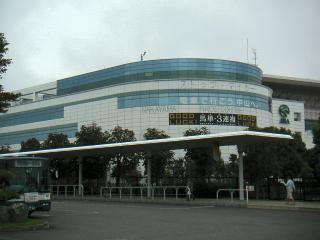 中山競馬場の厩舎沿いに歩くと、15分位で競馬場南門に出ます。