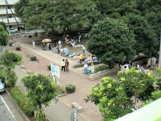 歩道橋の下のスペースを使って、フリーマーケットを楽しむ人達を見かけました。