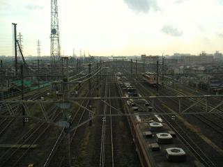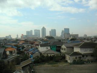 子守神社をあとにして、総武線を跨ぐ陸橋から幕張メッセを望みました。この風景は、どこかで見たことがあるような気がしてくるのです。