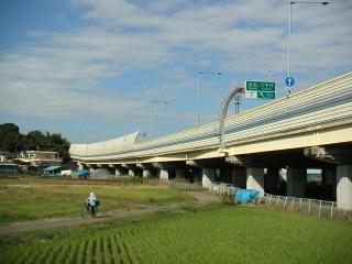 花見川のサイクリングロードに出ました。上流方向を見ています。