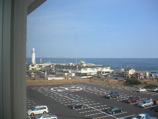 犬吠崎のホテルに到着して部屋の窓から灯台をスナップしました。 |