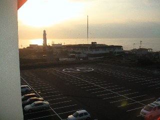 風呂上りに、夕焼けに映える灯台を眺めて一息入れました。 |