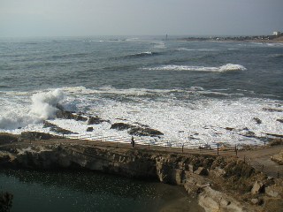 風があったので、波打ち際にはそこそこ波しぶきが上がっています。心地よい風に、波音を聞きながら、ここは最高のウォーキング・スポットです。