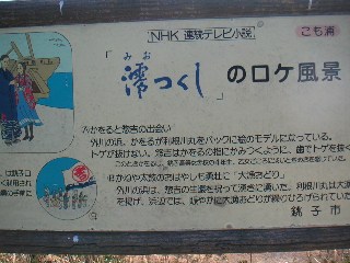 銚子市が設置している犬吠崎の石版です。犬吠崎の名前の由来が書かれていました。 |