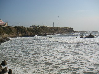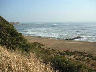 長崎海岸から犬吠崎灯台があんなに遠くに見えます。