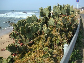 海岸線にサボテンが自生しています。どういう種類か、分かりませんでした。