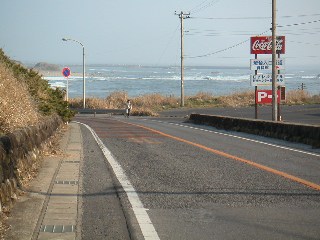 遊歩道を出て、長崎海岸まで県道を歩きました。 |