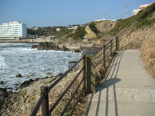 遊歩道は海岸線へ降りる道が続いています。
